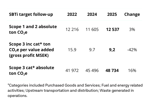 Cary Group is aligning its targets with the Science Based Targets initiative (SBTi) and the Paris Agreement, as part of its sustainable strategy. This involves integrating sustainability into its customer offerings, including digital solutions, convenient locations, fossil-free courtesy cars, and efforts to increase repair rates and recycle windscreens to reduce CO2e emissions. Cary Group has committed to reduce CO2e emissions from scope 1 & 2 by 42% in line with the Science Based Target initative’s (SBTi) 1.5°C scenario. For Scope 3 emissions should be reduced in relation to gross profit by 52% by 2030, compared to the base year 2022.